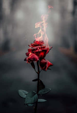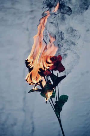 Aesthetic Pink Rose On Fire Wallpaper  -