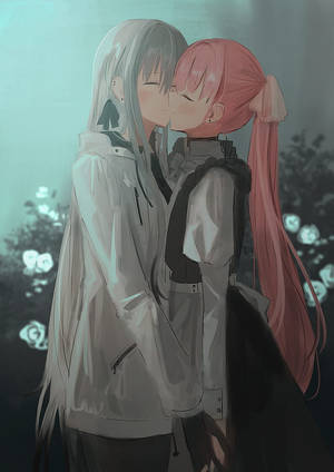"tender Anime Girls Sharing A Kiss" Wallpaper -