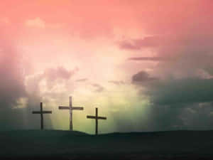 Three Beautiful Cross Silhouettes With Sunset Sky Wallpaper -