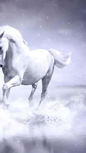 A Beautiful White Horse Galloping Through A Scenic Landscape Wallpaper -