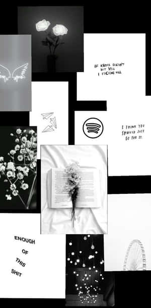 Black And White Collage With Pictures Of Flowers And A Sign Wallpaper -