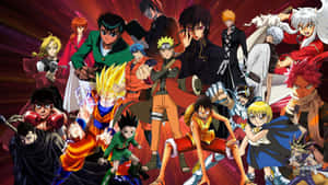 A Group Of Anime Characters Posing In Front Of A Cloud Wallpaper -