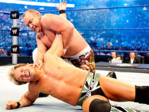 Professional Wrestler, Claudio Castagnoli, In A Gripping Showdown With Chris Jericho. Wallpaper -
