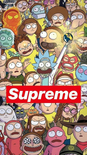 "interdimensional Escapades With Stylish Supreme Rick And Morty" Wallpaper -