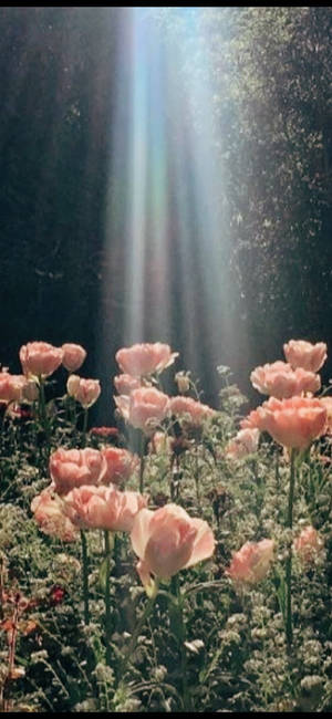 Sunrise In Garden Cottagecore Desktop Wallpaper -