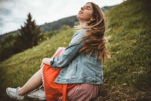 Country Girl Enjoying The Beauty Of Nature. Wallpaper -
