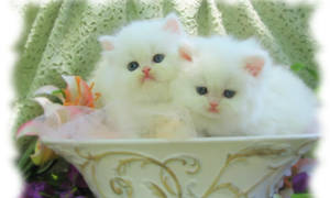 "ethereal White Cats Nestled In A Vase" Wallpaper -