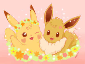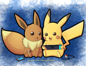 Cute Pikachu And Eevee Enjoying A Fun Day Out Wallpaper -