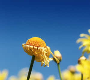 A Beautiful, Yellow Sunflower Against A Bright Blue Sky. Wallpaper -