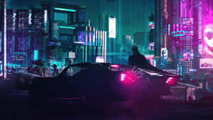 A Neon-lit Cyberpunk Aesthetic Scene Wallpaper -