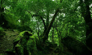 A Dark Green Forest Shrouded In Mystique Wallpaper -