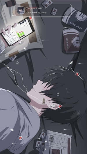 Depressed Anime Boy Wearing Headphones Wallpaper -