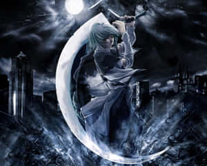 A Lone Emo Anime Boy Stares Into The Dark Night. Wallpaper -