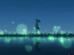 Illuminated By The Fireflies, A Woman Looks Out Into A Tranquil Dusk Sky. Wallpaper -