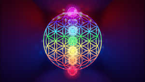 A Flower Of Life In A Circle With Colorful Lights Wallpaper -