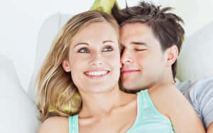 Two Lovers Smile In Each Other's Embrace. Wallpaper -