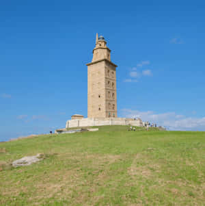 An Aerial View Of A Windmill Against A Grass-filled Landscape Wallpaper -
