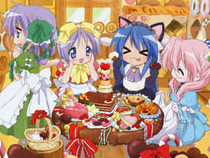Celebrate With Three Adorable Anime Girls! Wallpaper -