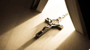Cross With Ray Of Light Shining From Heaven Wallpaper -