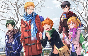 A Group Of Anime Characters Are Standing Together Wallpaper -