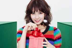 "hirai Momo Radiant In Red While Holding A Gift Box" Wallpaper  -