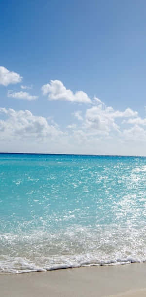 A Blue And White Beach With Waves Wallpaper -