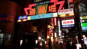 Bright Neon Lights Illuminating The Streets Of Japan Wallpaper -