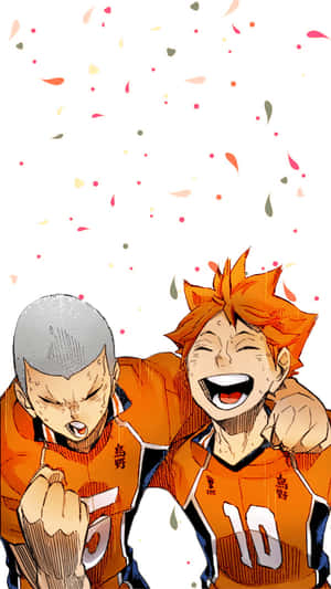 Dynamic Duo: Shoyo Hinata & Tobio Kageyama Of Karasuno Volleyball Club Wallpaper -