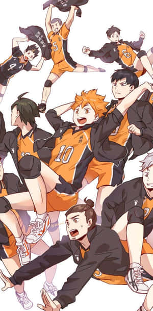 Ready To Soar: Haikyu's Karasuno Team Channels Their Spirit Of Unity Wallpaper -