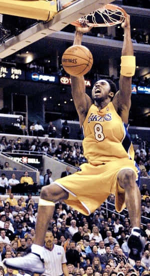 Kobe Bryant Captures The Crowd As He Reaches For The Rim Wallpaper -