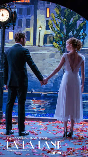Ryan Gosling And Emma Stone In The Academy Award Winning Film, La La Land Wallpaper -