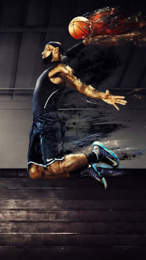 Lebron James Showcasing Skill On Iphone Wallpaper Wallpaper -