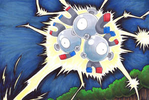 "electrifying Power Of Pokemon Magneton In Action" Wallpaper -