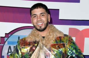 A Man In A Colorful Sweater Is Singing Into A Microphone Wallpaper -