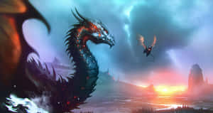 A Fierce, Mythical Dragon In The Sky Wallpaper -