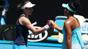 "dynamic Handshaking Moment Of Professional Tennis Player Johanna Konta" Wallpaper
