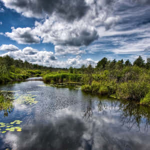 A Beautiful Lake Surrounded By Lush, Green Trees Wallpaper -