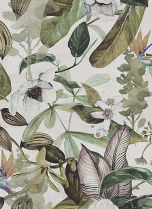A White Vase With Green Leaves Wallpaper -