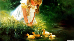 Meeting Of A Boy And Young Mermaid Wallpaper -