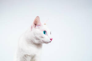 A White Cat Is Looking Up At The Camera Wallpaper -