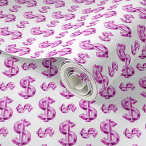 A Pink Dollar Sign Is Lit Up Against A Black Background Wallpaper -