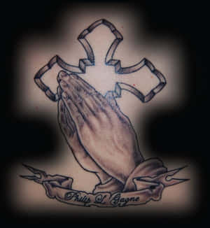 A Black And White Photo Of A Hand Praying Wallpaper -