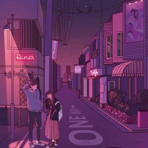 Japanese City Nighttime Purple Aesthetic Anime Wallpaper -