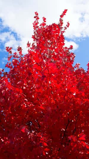 A Bright Red Tree Shimmering In The Sunlight Wallpaper -