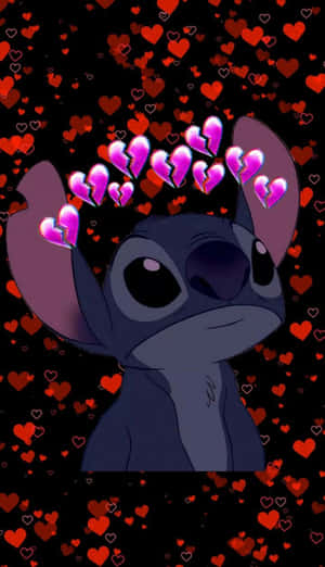 Stitchy Is Holding Hearts In His Hands Wallpaper -