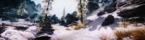 “the Unforgiving Beauty Of The Skyrim Landscape” Wallpaper -