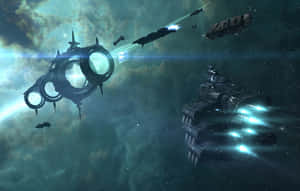 A Spaceship Flying In Space With A Star In The Background Wallpaper -