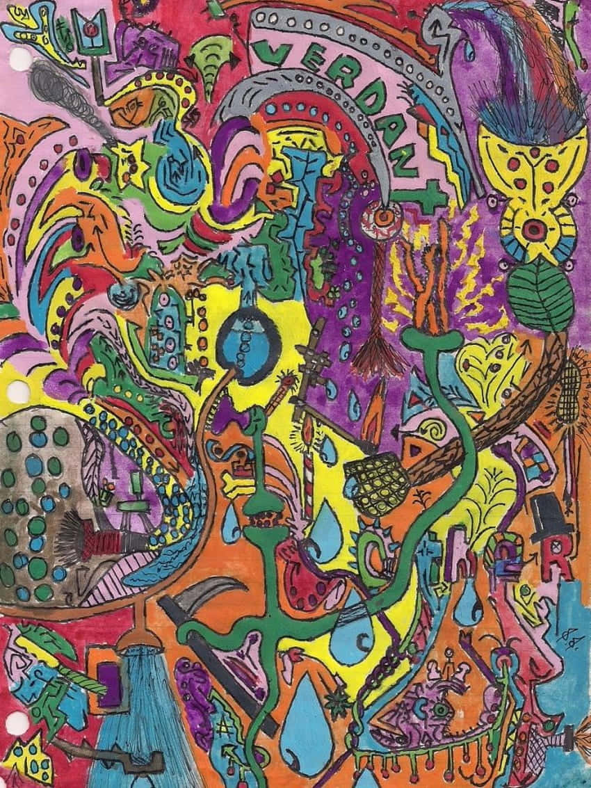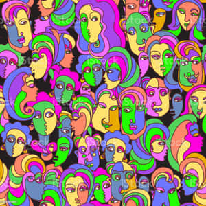 A Colorful Psychedelic Art Print With A Doodle Design Wallpaper -