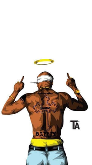 A Cartoon Illustration Of The Iconic Rapper Tupac Shakur Wallpaper -