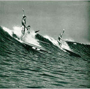 Amazing Vintage Surf Session On Big Waves Wallpaper -